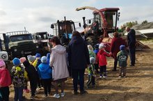 "Куркынычсызлык" айлыгы кысаларында зурлар һәм мәктәпкә әзерлек төркеме балалары "Сосна" хуҗалыгының машина-трактор паркына сәяхәт кылдылар. Транспорт төрләре турында белемнәрен ныгыттылар.