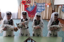 Кечкенәләр һәм уртанчылар төркемендә 8 март халыкара- хатын-кызлар көненә багышланган бәйрәм иртәсе. / В младше-средней группе утренник к 8 марта. 05.03.2021
