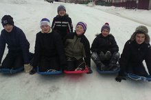 5 класс укучылары тауда чана шудылар, коймак белән сыйландылар.