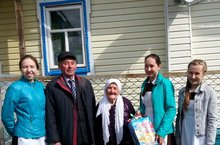 Укучыларыбыз авылдагы тыл ветераннарының хәлләрен белделәр. Аларга Рөстәм Миннехановның котлау хатларын тапшырдылар.