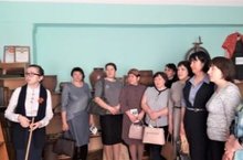 Район китапханәчеләре мәктәп музеенда.Экскурсияне 10 сыйныф укучысы Шарифуллина Фирүзә үткәрә.