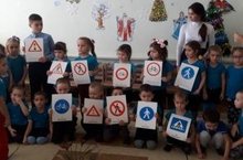 Члены отряда «Радар» в детском саду проводят занятие по правилам дорожного движения