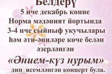 5 нче декабрь көнне Норма мәдәният йортында 3-4 сыйныф укучылары һәм әти-әниләре көче белән әзерләнгән концерт була. Сезне 19.00 сәгатьтә концертта көтеп калабыз!