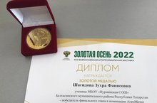 07.03.2023. 11 класс укучысы Шаһидова Зөһрә - Бөтенроссия АгроНТИ-2022 конкурсының АгроМетео номинациясе финального этабы җинүчесе. Ул “Алтын көз-2022” XXIV Бөтенроссия агропромышленность күргәзмәсенең алтын медале белән бүләкләнде.Котлыйбыз, Зөһрә!