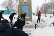 Учащиеся отряда «Ровесники» очистили памятник в центре с. Норма от снега.
