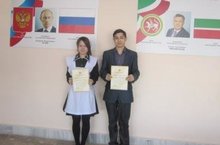 Участники регионального этапа Всероссийской олимпиады школьников: Закирова Алия Рафкатовна (11 кл.), Зарипов Алмаз Айратович (10 кл.)