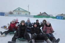 Каникулларыбызны бик кызыклы үткәрәбез. Көн саен тау ягы балаларның шат авазыннан яңгырап тора! Һәр класс укытучылары белән тауга чана шуарга чыга.