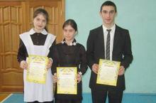 “Ялкын” журналының II дәрәҗә дипломы белән Татарстан Республикасы күләмендә үткәрелгән “Җитез уку” бәйгесе җиңүчесе 9 нчы б класс укучысы Сабирҗанов Расил бүләкләнә.
