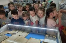 Мәктәп яны Ромашка лагерына йөрүче укучылар белән мәктәп музеенда булып мәктәбебезнең үткәне, тарихы белән беренче отряд танышты. -