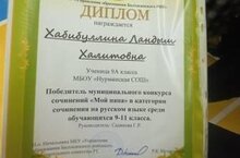 Муниципальный конкурс сочинений "Мой папа" среди обучающихся 9-11 классов Хабибуллина Ландыш победитель.