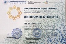 Музипов Ислам, ученик 9б класса МБОУ "Нурминская СОШ", принял участие в Приволжском молодежном фестивале народного творчества "Национальное достояние" (номинация "Декоративно-прикладное творчество") и стал обладателем диплома III степени.