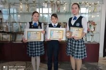 Коррупциягә каршы иҗади эшләр республика конкурсының муниципаль этабы җиңүчеләре Каримова Алсу, Гибадуллин Ранис һәм Закирова Диля.