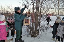 Мәктәп укучылары “Кошларга җим бирегез!” акциясендә катнашып кошлар өчен җимлекләр куйдылар.