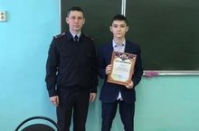 Профилактическая беседа для учащихся 8-9 классов. Встреча с Сибгатуллиным А.З., помощником начальника отдела МВД России по Балтасинскому району. Он передал благодарность начальника отдела МВД России по Балтасинскому району Усманова И.К. обучающемуся 9а класса Халимову Раилю за активное участие на спартакиаде МВД «Лецеист 2019».