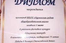 16 января подвели итоги районного фестиваля “Школьных театров”. Наша школа заняла I место в номинации ”Спектакль, посвященный 75 летию Победы в Великой Отечественной войне”. Хабибрахманов А.З. был признан лучшим исполнителем мужской роли.
