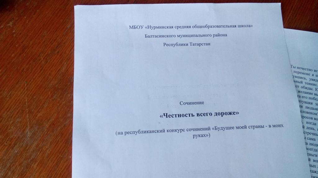 “Надо жить честно” конкурсы кысаларында сочинениялар конкурсы