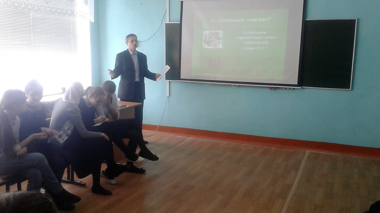 Опубликовано: 01.02.2019В рамках декады математики, физики и информатики внеклассное мероприятие в 8 классе. Учитель математики Камалов А.Н.