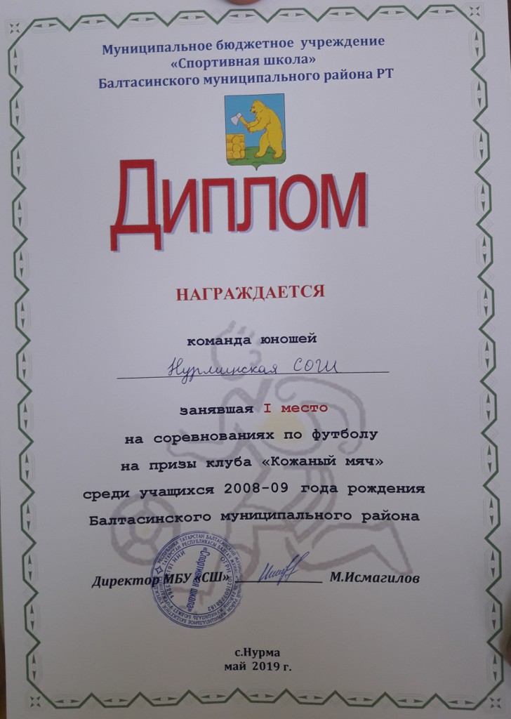 Опубликовано: 14.05.2019Безнең футбол командасы 2008-2009 нчы елгы укучылар арасындагы ”Күн туп”клубы призына футбол ярышында беренче! Тренер Садыйков Рамил Мөнирович.