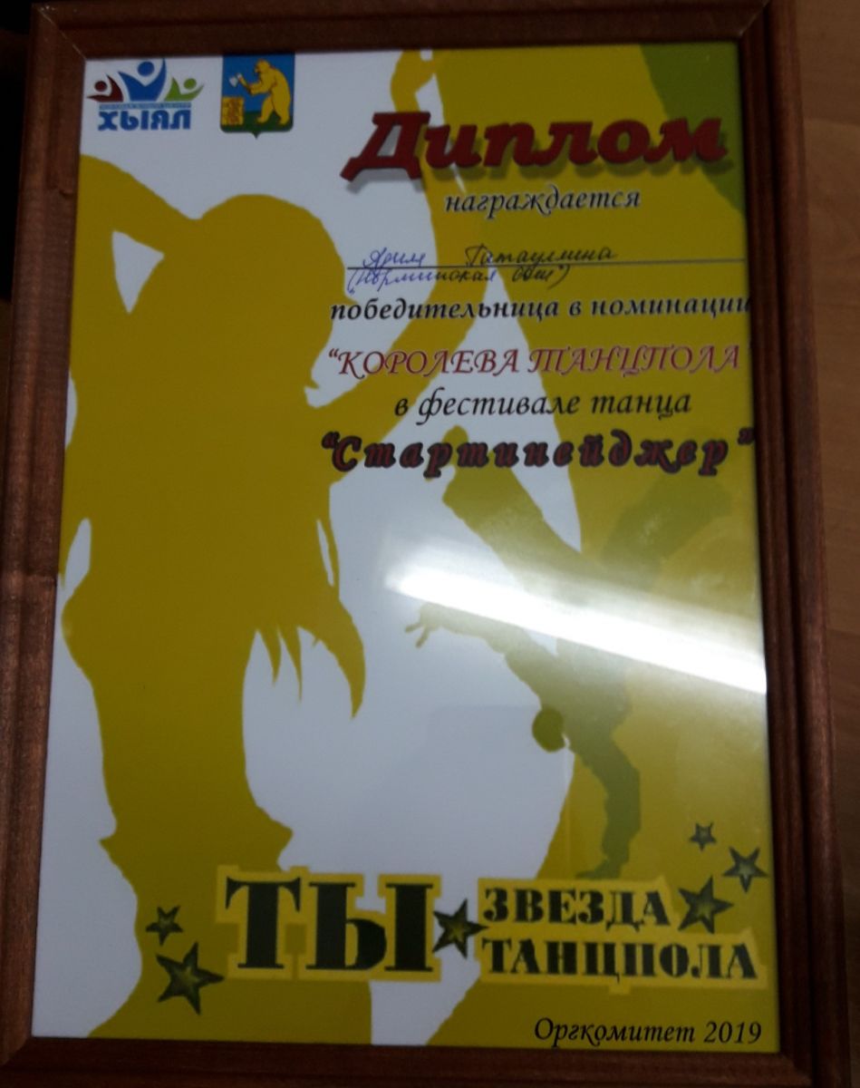 Опубликовано: 05.12.2019”Стартинейджер” бию фестивалендә ”Әке-бәке” бию төркеме (фотода сары футболкаларда) “Иң спорт сөюче команда” номинациясендә җиңүче булды. Гатауллина Адилә - “Королева Танцпола” номинациясендә җиңде.