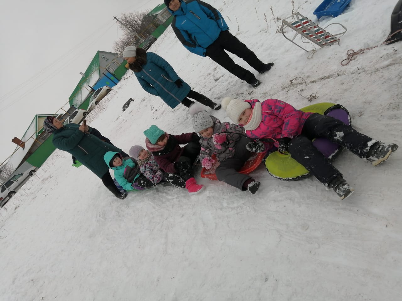 Каникулы продолжаются. Совместный зимний отдых с родителями. Обучающиеся и их родители, классные руководители провели праздник катания с горки.
