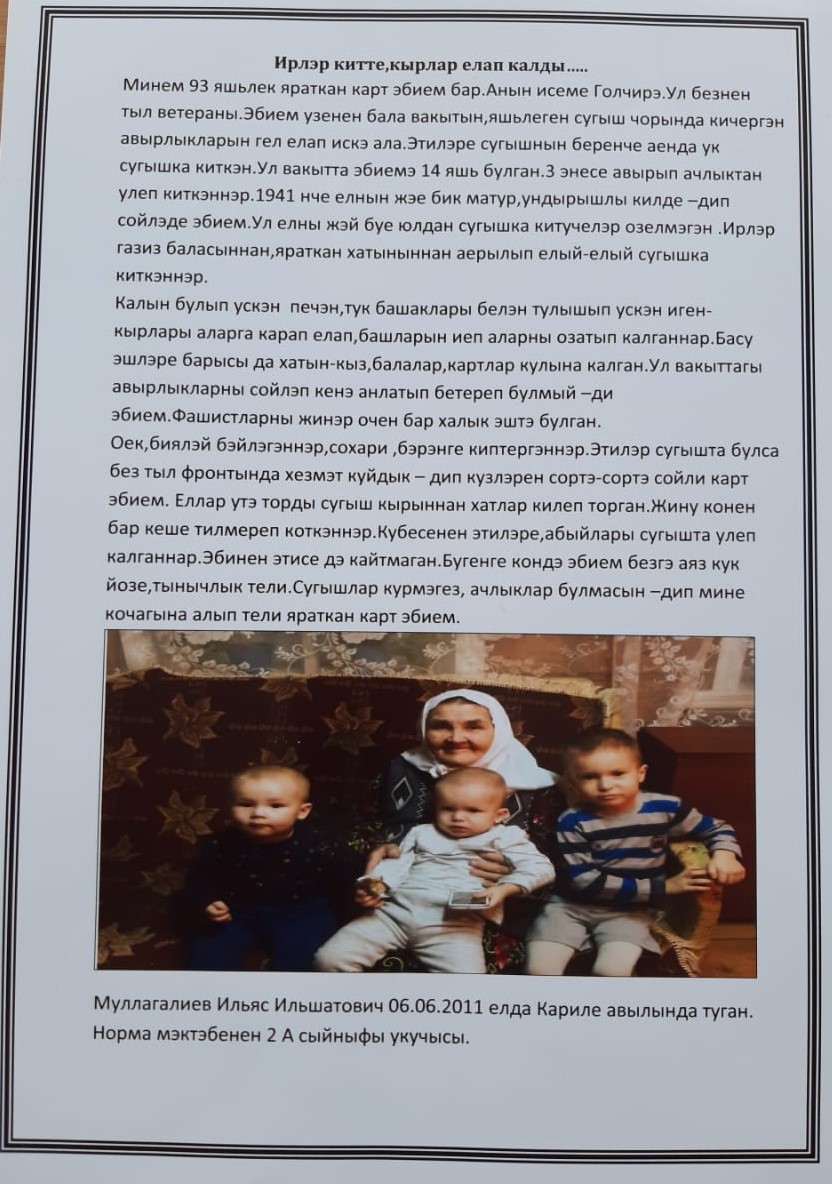 “Безнең буын сезгә рәхмәтле!” мәктәп проекты