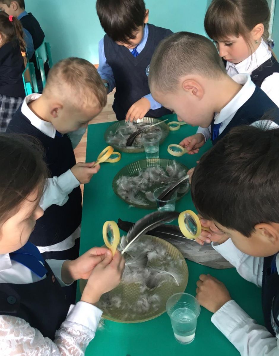 Урок окружающего мира в 1б классе на тему «Исследуем перья птиц» Учитель Кадырова З.А.
