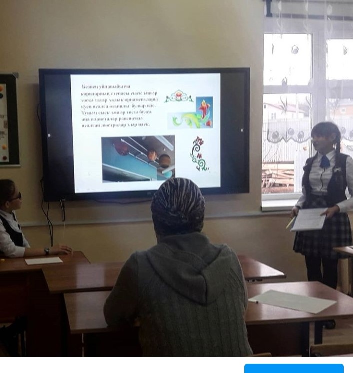 Защита проекта класса на общешкольном уровне “Минем милли рухлы, заманча мәктәбем”.