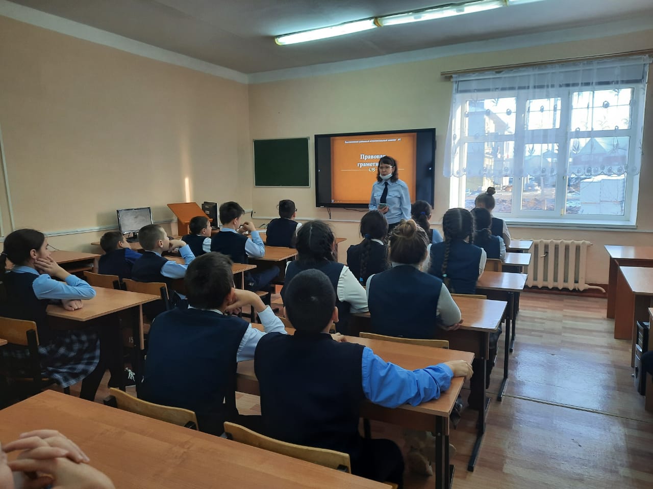 Опубликовано: 20.11.2020В рамках “Месячника правовых знаний и профилактики правонарушений” муниципальный служащий Низамиева Л.Ф. провела беседу на тему “Правовая грамотность”с обучающимися 5-6 классов.