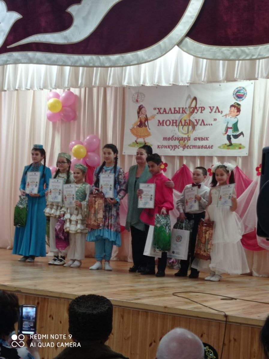 Опубликовано: 25.03.202124 марта состоялся региональный конкурс – фестиваль “Халык зур ул, монлы ул...”. Галиев Газиз (3 б класс), Шакиров Амирхан ( 4 а класс) были награждены дипломами фестиваля. Габдрахманова Диляра (6 б классы) - диплом III степени, Хабибуллина Диля - диплом I степени, Марданов Раиль – диплом “Гран-при.