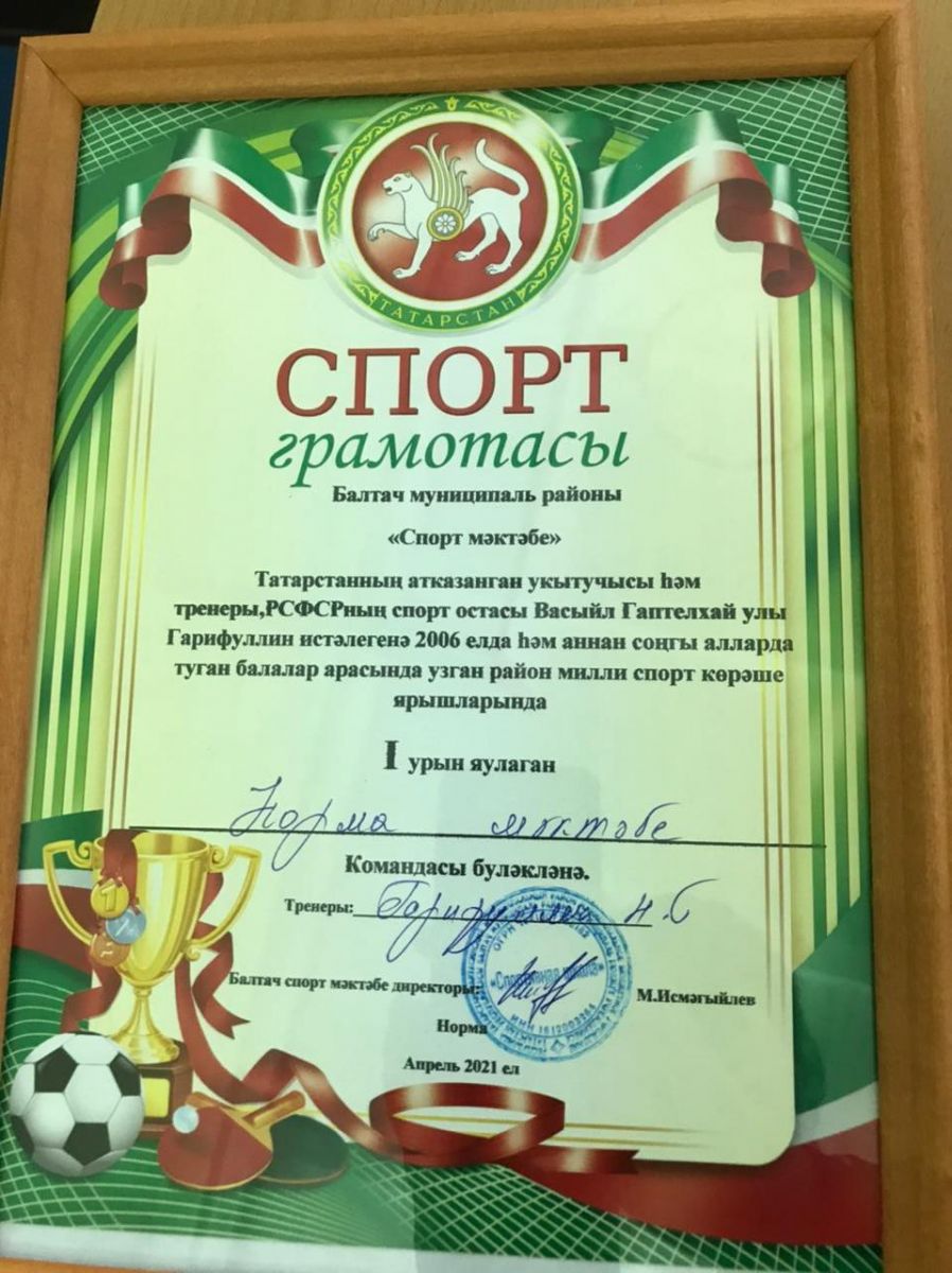 Опубликовано: 17.04.202117 апреля в нашей школе состоялись соревнования по спортивной национальной борьбе в честь памяти Заслуженного учителя и тренера РТ, мастера спорта РСФСР Гарифуллина Васила Гаптулхаевича. Наша команда заняла первое место. Молодцы!