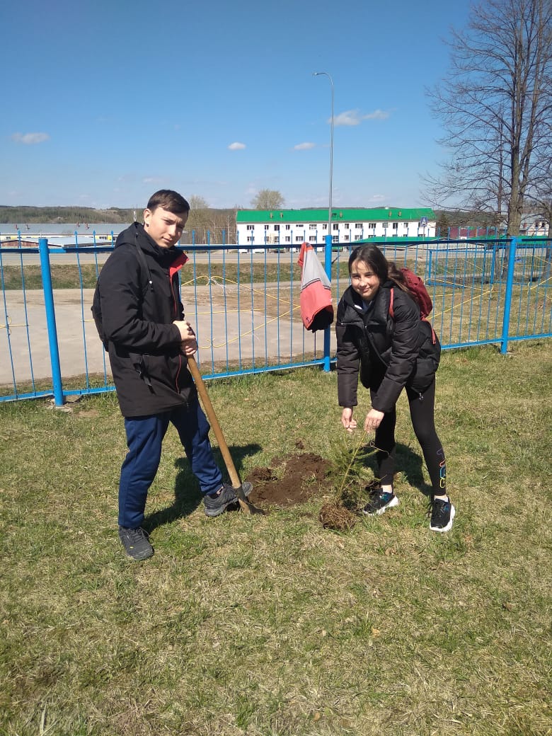 Международная акция “Сад памяти”. С 27 апреля по 8 мая были посажены саженцы декоративных деревьев на школьной территории и саженцы сосны  на участке лесничества.
