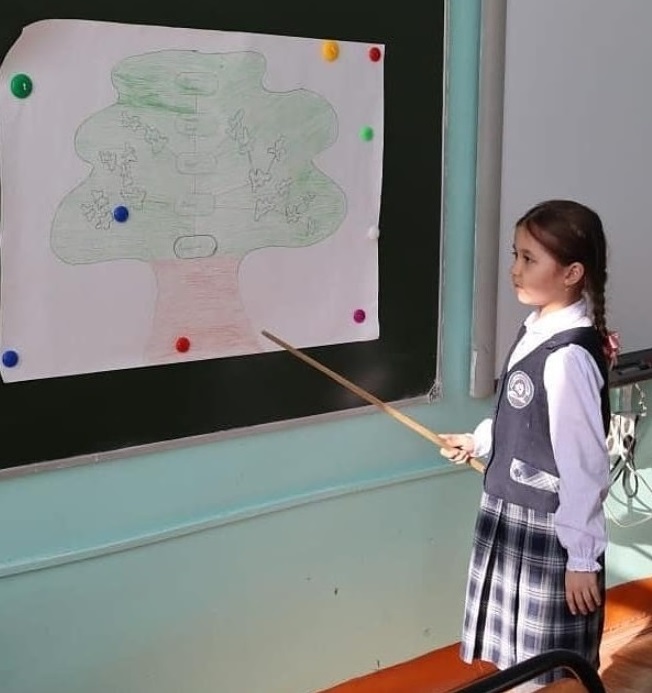 Год родных языков и народного единства. В школе прошел второй этап конкурса "Моя родословная" среди  обучающихся 1-4 классов. Гость конкурса Миннебаева Г.А.