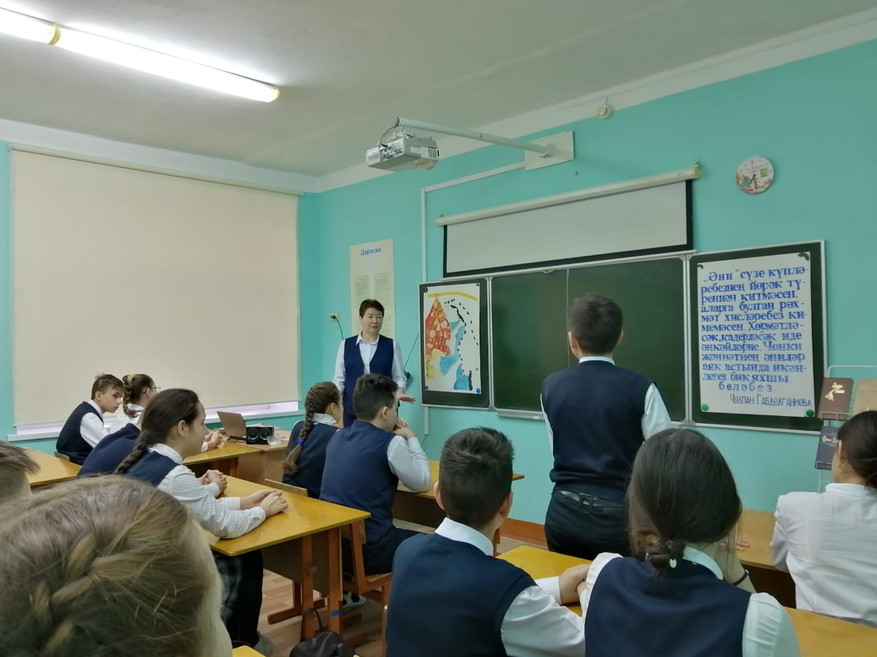 Энже Васильевна провела с учащимися 8а класса теплую , приятную беседу, посвященную Дню матери, под названием "Әни диеп язып куйдым".