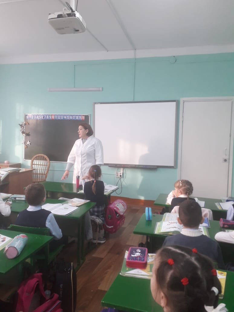 Встреча с медсестрой школы, беседа на тему "Что такое иммунитет ?" в 1-х классах