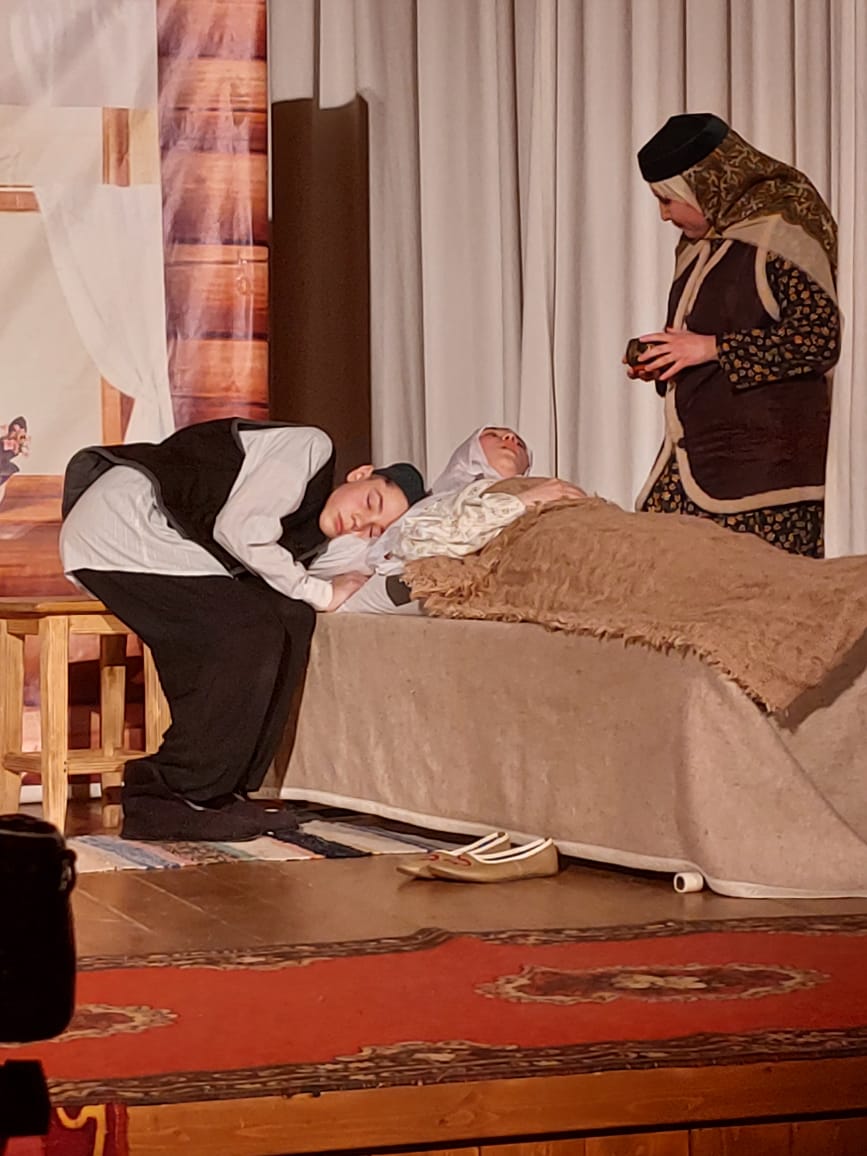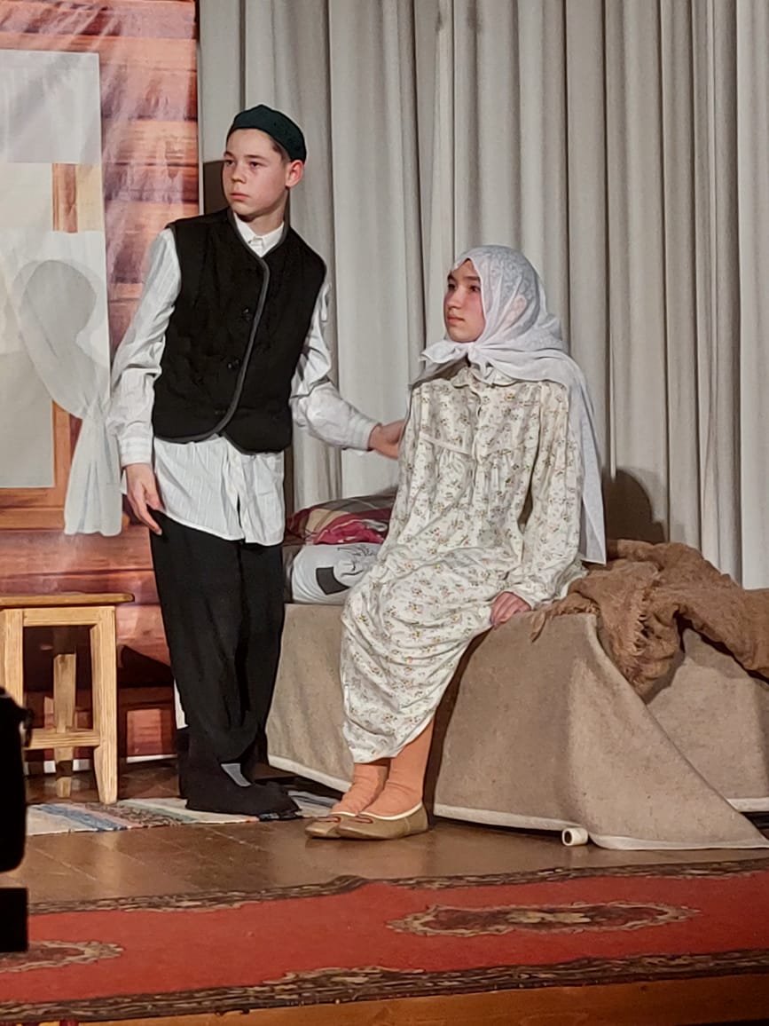 Кичә мәктәпнең Раушания Фаруховна җитәкләгән театр түгәрәгендә шөгыльләнүче укучылар тарафыннан әзерләнгән Галимҗан Гыйльманның “Убырлы карчык – әбием” спектаклен карау белән башланып китте. Тирән мәгънәле әсәр һәр укучыны елатты да, көлдерде дә. Әсәр гади генә бер авыл малаеның әнисенә булган мәхәббәте, аның өчен кылган батырлыгы хакында. Кичәдән укучылар әниләренең нинди бөек зат икәнен, аларны яратырга, кадерләргә кирәклеген тагын бер кат аңлап кайтып киткәндер, мөгәен.