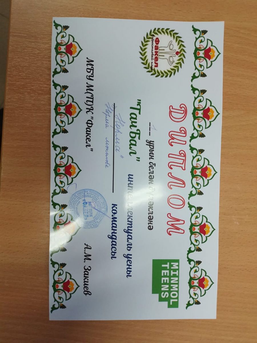 Опубликовано: 22.12.202219.12.2022. Обучающимся 10 класса МБОУ “Нурминская СОШ” не нашлось равных в интеллектуальной игре “Тачбал”. Наша команда в составе Садикова Амира, Хабибуллиной Ландыш, Гатауллиной Лины победила своих соперников в интеллектуальной игре, посвященной истории родного края. Игра была организована педагогами МБУ М(П) “Факел”.