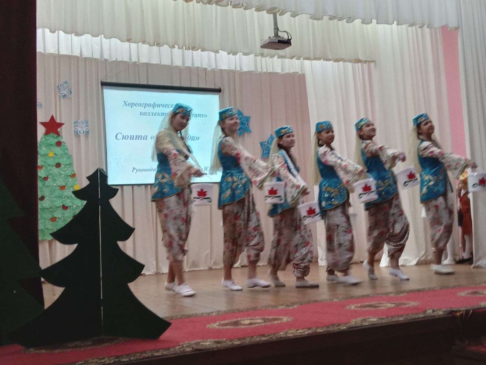 В концерте «Праздник детства – Новый год» приняли участие воспитанники кружков «Цветная бусинка» (ЦВР, рук. Ахмадуллина Г.Р.), «Ритмы танца» (ЦВР, рук. Мухаммадиева С.Г.), «Конферанс» (ЦВР, рук. Юсупова Г.А.), «Веселый английский» (школа, рук. Шафигуллина Л.Р.), «Татарча җырлыйбыз» (школа, рук. Каримова Ф.Р.) и танцевальных групп « Reverans», «Браво» ( школа искусства, рук. Хабибуллина Н.Ф.).