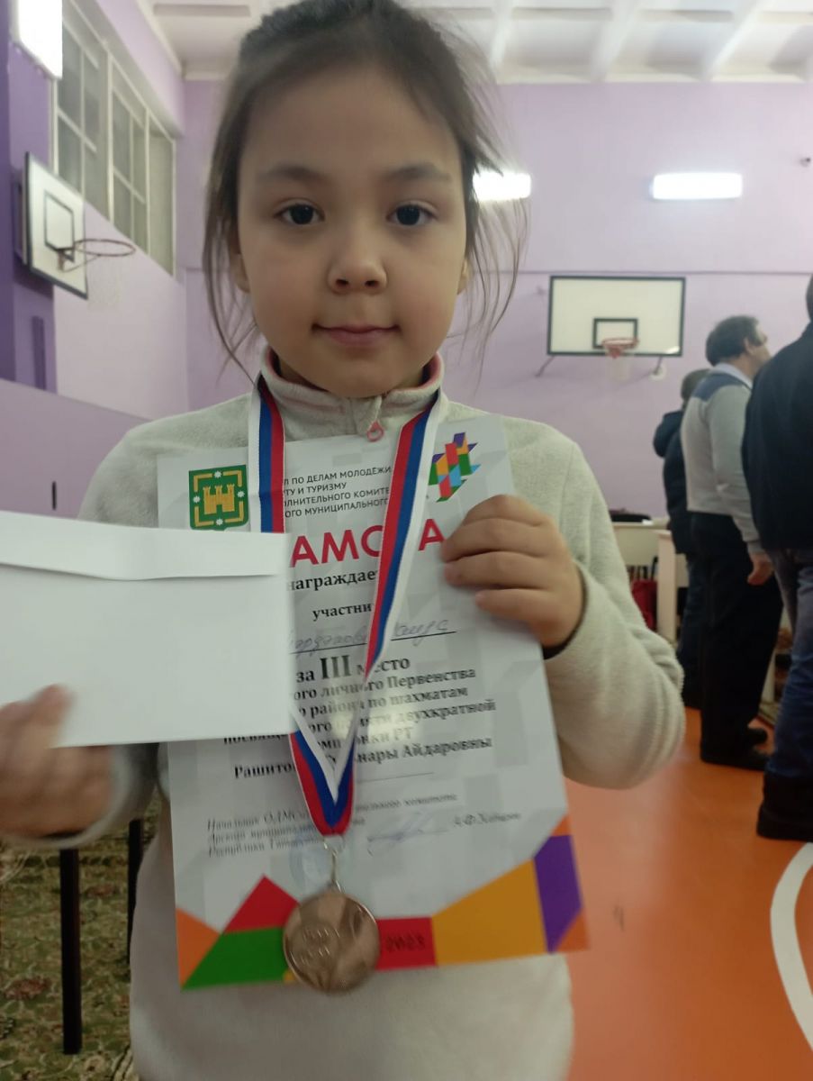 Опубликовано: 11.01.2023В прошлой неделе обучающаяся 1класса Марданова Раида заняла 3 место в шахматном турнире в г.Арск и 1 место в районном турнире по шахматам памяти Фаота Юсупова в с. Салаусь. Брат Раиды, обучающийся 4б класса Марданов Раиль, занял 2 место. Поздравляем их победой!