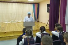 В рамках проведения недели школьного питания перед учениками выступила фельдшер ФАП Фасхутдинова З.Х. Она рассказала ребятам о правилах питания в школе и дома.