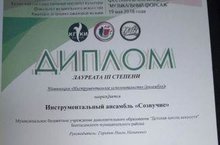 19 мая прошел III Открытый Республиканский фестиваль-конкурс инструментального исполнительства "Золотой камертон". Закиров Раиль - гармонь (руководитель Мустафин Ф.М.) лауреат II степени, Фатихов Азамат -гармонь (руководитель Мустафин Ф.М.) дипломант I степени. Павлова Виктория - фортепиано (руководитель Курбанова Ю.А.) дипломант I степени, Гатауллина Лина - фортепиано (руководитель Миргалимова Г.З.) дипломант II степени.
