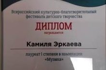 8 июня в г. Казань прошел Всероссийский культурно-благотворительный фестиваль детского творчества "Добрая волна". Фестиваль, направленный на развитие творческого потенциала талантливых детей и молодежи и на создание условий социализации детей, находящихся в трудной жизненной ситуации, собрал вместе воспитанников детских домов, детей, оставшихся без попечения родителей, детей из многодетных и малообеспеченных семей, с ограниченными возможностями. Эркаева Камиля (руководитель Файзрахманова А.Ф.) стала лауреатом I степени в номинации "Музыка", Широков Леонид (руководитель Аскарова Г.Р.) получил диплом участника.