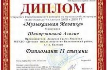 9 апреля в Казани прошла Открытая Республиканская олимпиада по музыкальной литературе «Музыкальная Мозаика» среди учащихся ДМШ и ДШИ РТ. Учащиеся Детской школы искусств Шакирзянова Азалия стала дипломантом II степени, Хамитова Зиля стала дипломантом (преподаватель Аскарова Г.Р.).