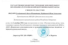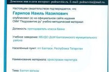 Преподаватель класса баяна Гарипов Н.Н. опубликовал на официальном сайте издания СМИ "Педразвитие.ру" оркестровую партитуру "Балтач вальсы" и получил свидетельство о публикации.