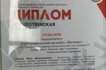 Хореографический коллектив "Восторг", руководители Васинкин Э.Г. и Хабибуллина Н.Ф., - ГРАН-ПРИ и приглашение на бесплатное участие в XI Международном конкурсе-фестивале детского и юношеского творчества "Виктория", посвященному 75-ой годовщине победы в Великой Отечественной Войне.