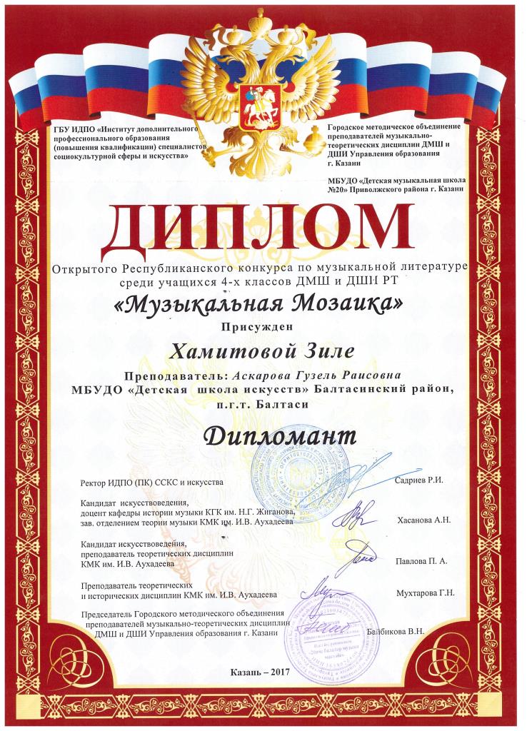 Открытая Республиканская олимпиада по музыкальной литературе «Музыкальная Мозаика»