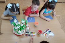 Мәктәпкә әзерлек төркеме балалары рәсем шөгылендә язның беренче чәчәген "Умырзая" ясадылар.