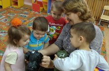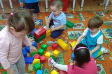 Воспитанники ясельной группы помогают строить дом для зайчика