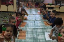 Мәктәпкә зерлек төркеме "Гөмбә салам кәрҗинемә" дигән темага рәсем ясый.