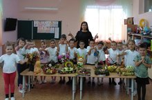 Мәктәпкә әзерлек төркеме, көзге уңышлардан ясалган кул әшләре белән, күргәзмә ясады.