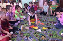 Мәктәпкә хәзерлек төркеме, инглиз теле шөгылендә хәрәкәтле уен уйный.